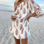 Este minivestido de un solo hombro para mujer combina un encanto divertido con una sofisticación chic, con mangas abullonadas y estampado integral . Su corte asimétrico le da un toque sofisticado, perfecto para un brunch, paseos por la playa o reuniones informales. Su corte holgado y su diseño llamativo lo convierten en una prenda imprescindible.