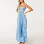 Vestido largo plisado para mujer con cintura recortada y tirantes finos