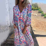 Vestido largo estampado para mujer con escote en V y mangas holgadas
