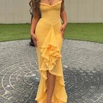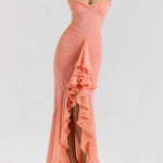 Vestido largo ajustado con volantes para invitada de boda con dobladillo alto-bajo para mujer