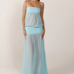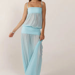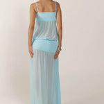 Vestido largo transparente para mujer con tirantes finos y aberturas laterales