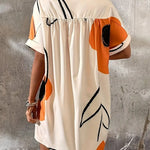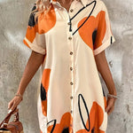 Este vestido camisero para mujer presenta un moderno estampado abstracto que aporta personalidad a una silueta atemporal. Diseñado con botones frontales y corte holgado , ofrece estilo y comodidad para cualquier salida en climas cálidos. Sus mangas cortas y corte fluido lo hacen ideal para ocasiones formales o informales.