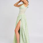 Vestido largo con corsé sin mangas para mujer con abertura frontal