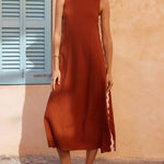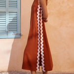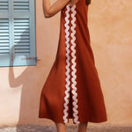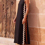 Este vestido largo sin mangas para mujer combina comodidad con un diseño moderno. Las llamativas rayas onduladas a los lados le dan un toque divertido, mientras que la abertura lateral proporciona un toque extra de estilo y libertad de movimiento. Ya sea para una salida informal o para un día de playa, este vestido te hará lucir elegante y sentirte cómoda.