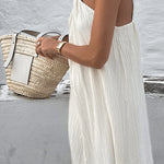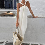 Este elegante y sencillo vestido largo sin mangas para mujer presenta un exclusivo escote retorcido que añade una sutil elegancia a tu armario de verano. Su silueta fluida y bajo con aberturas crean un movimiento elegante y una comodidad transpirable para paseos por la playa o cenas en la terraza. Ideal para días cálidos, combina sofisticación y comodidad con un acabado moderno.