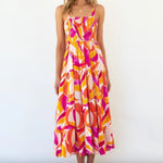 Vestido largo fruncido sin mangas para mujer con estampado abstracto colorido