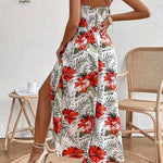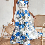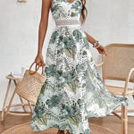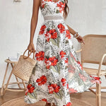 Vestido largo con tirantes finos para mujer con estampado tropical y detalle en la cintura
