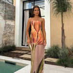 Este impresionante vestido largo sin tirantes para mujer luce un impactante estampado floral que irradia una vibrante elegancia . Diseñado con una silueta estilizada y un corte hasta el suelo , es perfecto para ocasiones formales o salidas nocturnas. El impecable escote sin tirantes realza su atractivo moderno y refinado.