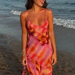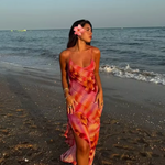 Vestido largo con estampado tropical para mujer, abertura lateral y tirantes finos