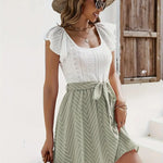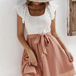 Minivestido bicolor para mujer con ojales en la parte superior y falda con lazo en la cintura