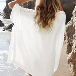 Esta túnica playera para mujer presenta una silueta fresca y elegantes detalles de crochet . Su profundo escote en V le da un toque favorecedor, ideal para usarla sobre un traje de baño. Fácil de poner e ideal para cualquier escapada a la playa o informal.