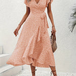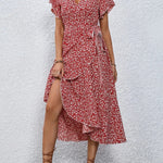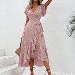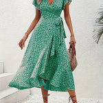 Vestido mini cruzado floral con escote en V para mujer, mangas cortas y lazo en la cintura