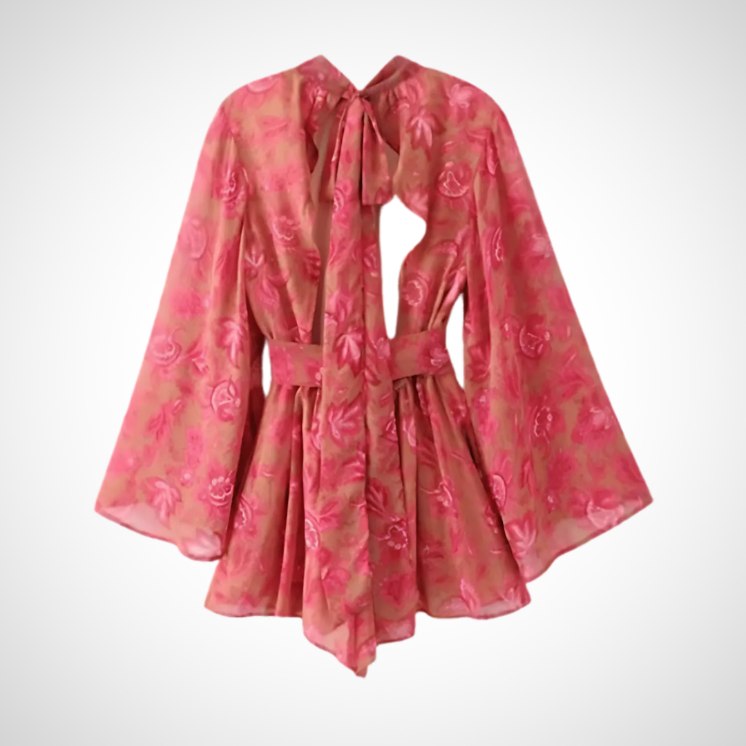 Sal con estilo con un elegante mono con cinturón y mangas sueltas