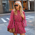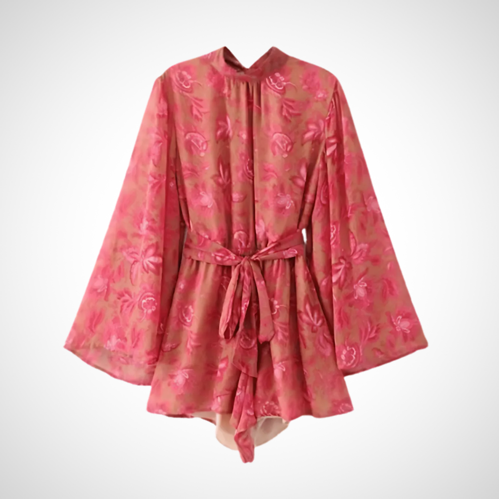 Mono de mujer de manga larga con cinturón, cuello alto y mangas sueltas