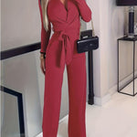 Sal con estilo con un mono cruzado de cuello en V y pierna ancha para mujer