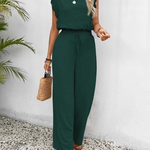 Este mono sin mangas para mujer combina un encanto relajado con una silueta favorecedora. Diseñado con delicados hombros con ribete de encaje y una cinturilla flexible con cordón , ofrece elegancia y comodidad. Perfecto para un brunch, recados o salidas informales, este look se adapta a la perfección del día a la noche.