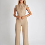 Mono de pierna ancha sin mangas para mujer con detalle de cuello drapeado