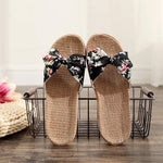 Pantuflas con lazo para mujer, tira floral y suela de lino