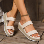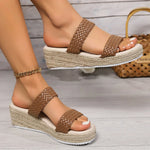 Estas elegantes sandalias de plataforma presentan un elegante diseño trenzado y un cómodo tacón de cuña . Con un diseño fácil de poner y correas seguras, son perfectas para añadir un toque moderno a tu look casual, garantizando comodidad durante todo el día.