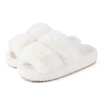 Pantuflas de felpa con punta abierta para mujer, correa ajustable y suela suave