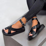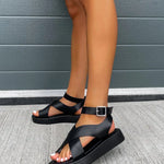 Sandalias de plataforma para mujer con tiras cruzadas y hebilla en el tobillo