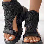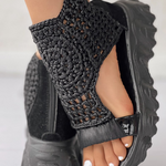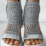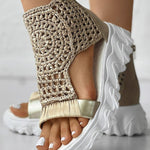 Sandalias de plataforma para mujer con parte superior de punto de crochet y punta abierta