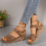Sandalias de cuña para mujer con tira ajustable y detalle de abertura