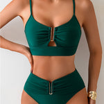 Bikini de dos piezas de cintura alta para mujer con detalles metálicos