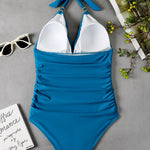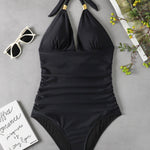 Traje de baño de una pieza con cuello halter y estampado de leopardo para mujer