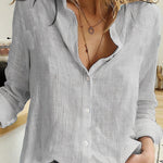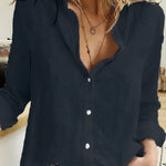 Blusa informal de manga larga con botones y cuello de solapa para mujer