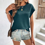 Esta camisa casual de manga corta para mujer está diseñada para un estilo informal y para usarla todo el día. Su clásico cuello redondo y su sutil textura le dan dimensión, manteniendo una silueta impecable. Perfecta para combinar con jeans o faldas, esta versátil prenda es imprescindible en cualquier armario moderno.