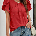 Elegante blusa de lunares suizos con mangas de pétalos para mujer