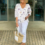 Este top floral combina un tejido ligero y transpirable con un delicado diseño floral, creando un look fresco y elegante. Su corte holgado garantiza comodidad durante todo el día, lo que lo hace perfecto tanto para salidas informales como para looks relajados. Fácil de combinar con vaqueros, shorts o faldas para un look versátil.