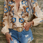 Blusa de manga larga con botones para mujer con estampado floral