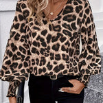 Esta blusa está diseñada para llamar la atención con su atrevido estampado de leopardo y su favorecedor escote en V. Las mangas largas con puños fruncidos ofrecen un acabado sofisticado, añadiendo volumen y estructura a tu silueta. Ya sea con vaqueros o pantalones a medida, esta prenda aporta seguridad y elegancia a cualquier look.