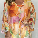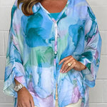 Esta blusa ligera con botones para mujer presenta una silueta relajada y un suave estampado de acuarela para un look moderno y vaporoso. Diseñada para brindar comodidad y atractivo visual, combina fácilmente con atuendos casuales y semi-elegantes. Su corte holgado y tela fluida la hacen ideal para climas cálidos y para combinar con otras prendas sin esfuerzo.