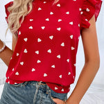 Dale un toque de encanto a tus looks con este top de cuello alto con mangas con volantes para mujer, con un divertido estampado de corazones y un elegante escote con volantes . Ideal para días casuales y looks de verano, combina a la perfección con jeans, shorts o faldas. Una alegre adición a tu armario.