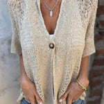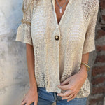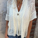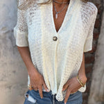 Elegante top de punto de manga corta con botones en la parte delantera para mujer