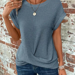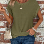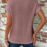 Blusa texturizada de manga corta con botones para mujer y corte clásico