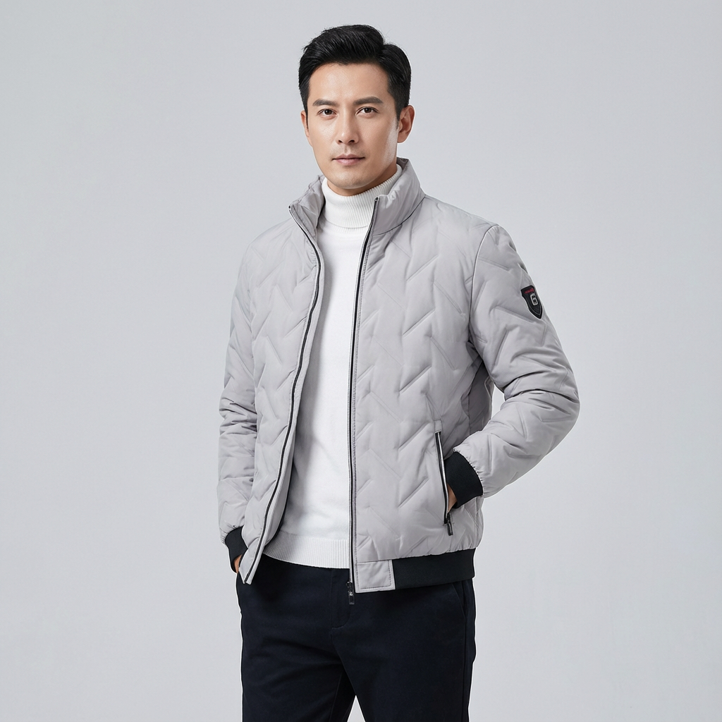 Esta chaqueta bomber acolchada para hombre combina estilo urbano y confort térmico. Su cuello alto y bolsillos con cremallera ofrecen protección contra el frío y practicidad, convirtiéndola en la opción ideal para los días frescos.