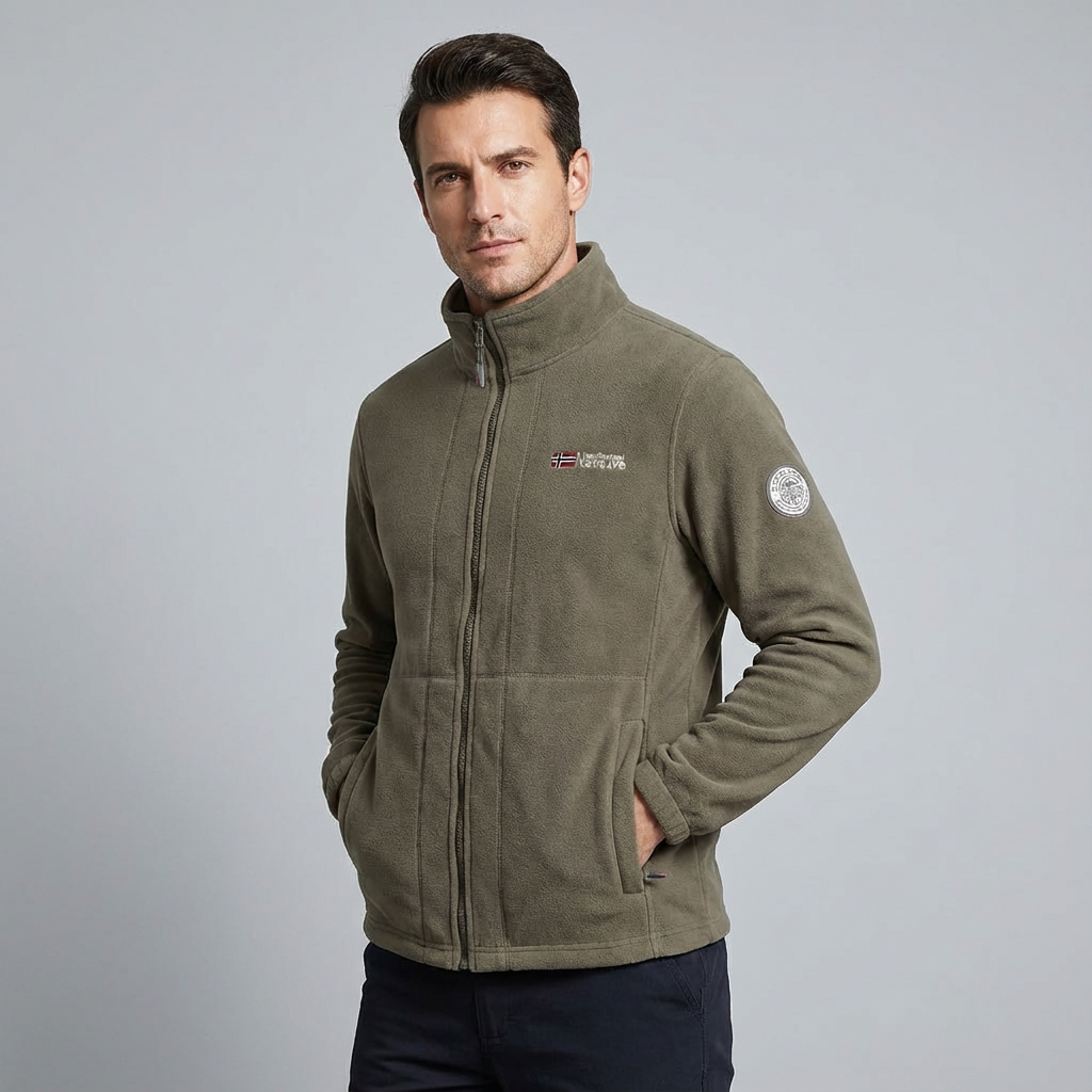 Chaqueta Outdoor para Hombre con Cierre Completo, Cuello Alto y Corte Ajustado