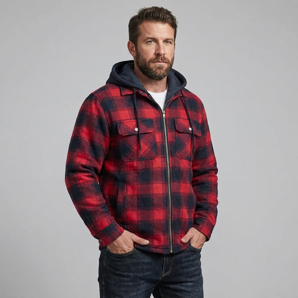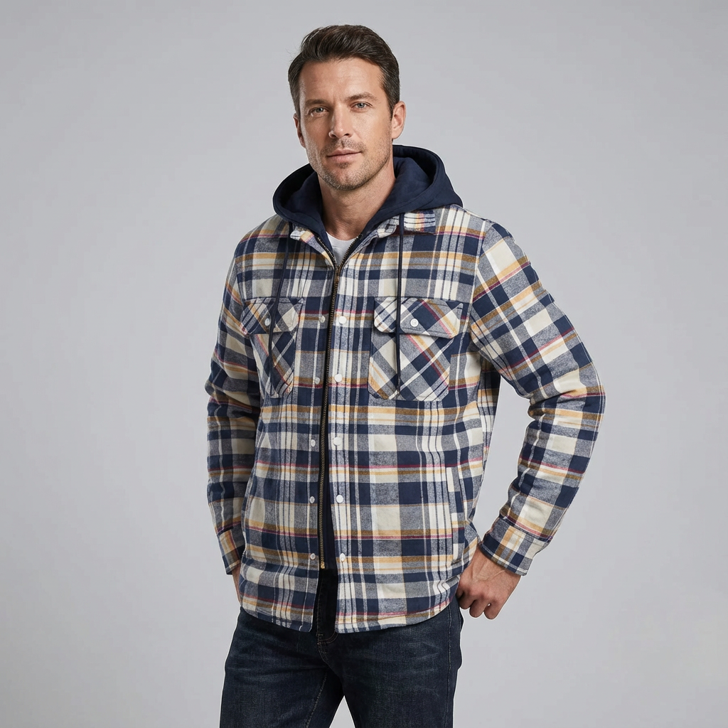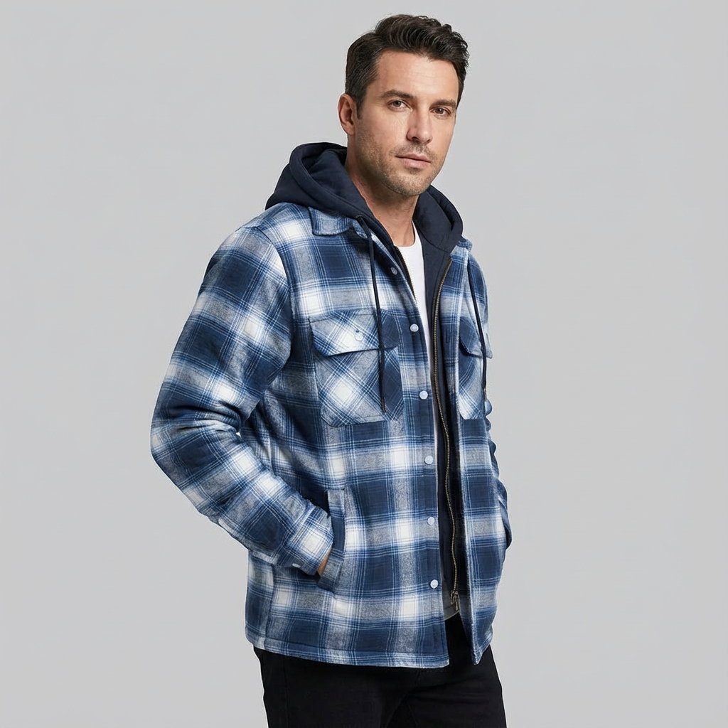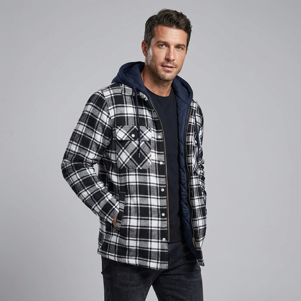 Chaqueta Bomber de Cuadros para Hombre con Capucha y Forro Acolchado