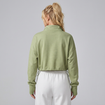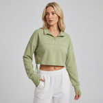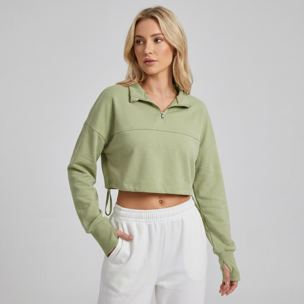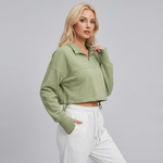 Women’s Cropped Sweatshirt Jumper with Zip Neck and Balloon Sleeves