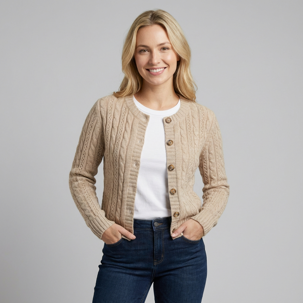 Women's Slim Fit Cable Knit Cardigan with Button Front Closure