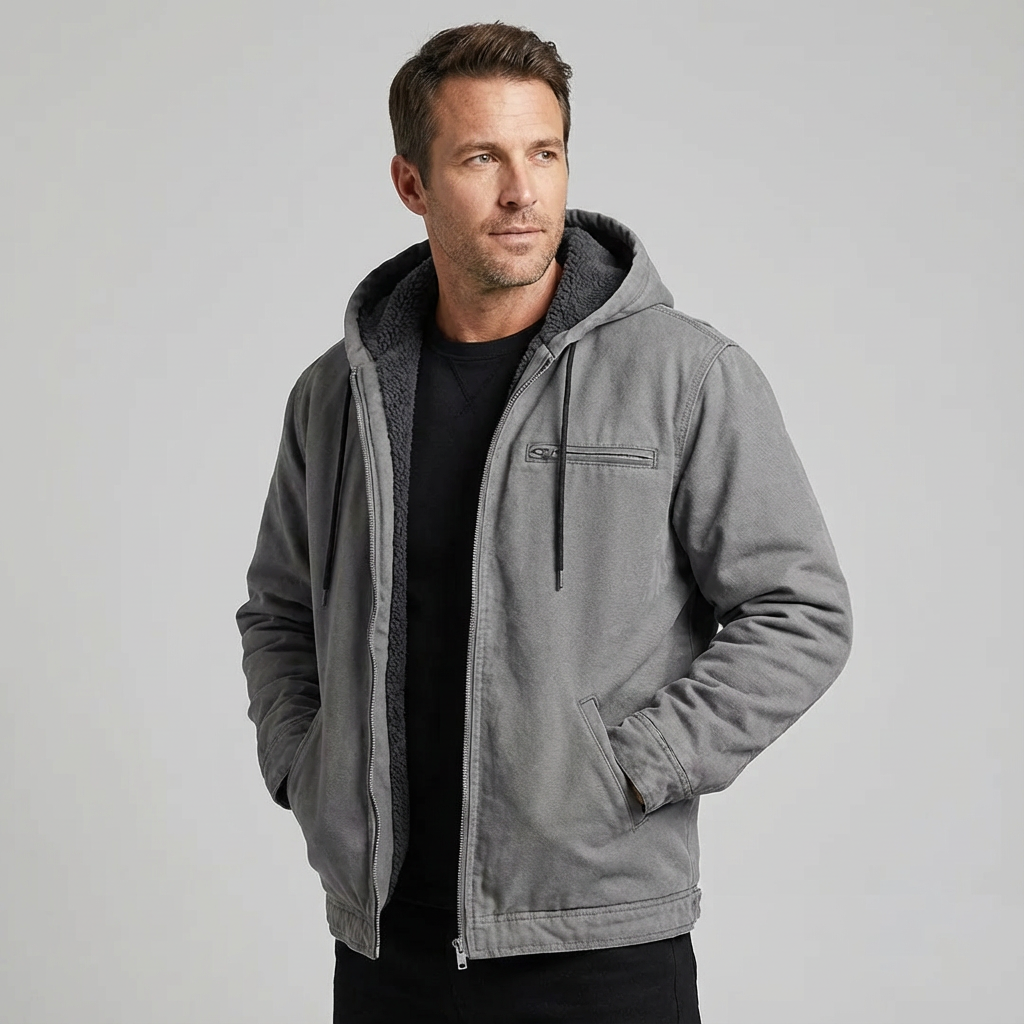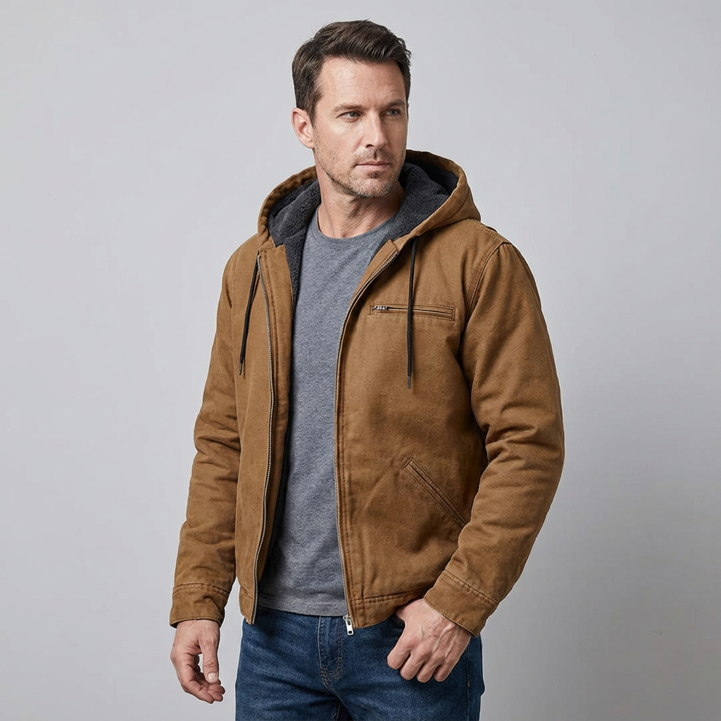 Chaqueta Bomber con Capucha para Hombre, Interior Forrado y Bolsillos con Cremallera
