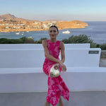 This women's floral print fitted maxi dress is a stunning choice for any special occasion. The floral pattern and figure-hugging silhouette create a striking look, perfect for formal events or evening parties. Its sleek design flatters the body while offering a sophisticated, elegant appearance.