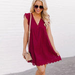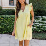 Women's Eyelet Mini Dress with Flutter Sleeves and V-Neck