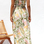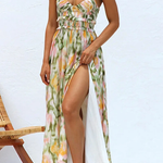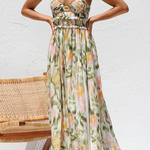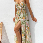 Embrace the season in this printed maxi dress designed with delicate spaghetti straps and a flattering gathered bust. The airy fabric flows beautifully, while the side slit adds a modern touch to your look. Perfect for sunny days or breezy evenings out.