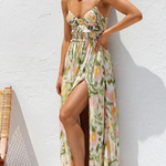 Women's Printed Maxi Dress with Spaghetti Straps and Side Slit