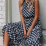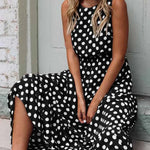 Women's Sleeveless Polka Dot Maxi Dress with Relaxed Fit